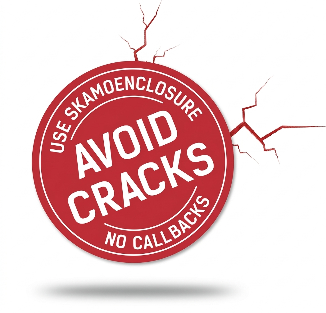 USE SKAMOENCLOSURE BOARD – AVOID CRACKS – AVOID RETURN VISITS